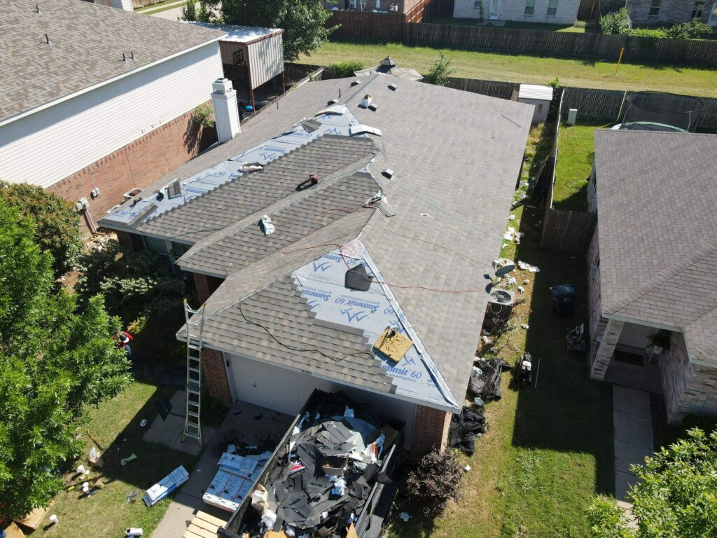 Insurance claim context after hail or wind: once a field of shingles shows consistent functional damage, full replacement often becomes the rational path. Code-required upgrades (drip edge, ventilation balance) may be part of the scope, and buyers in Collin County increasingly expect them at resale.